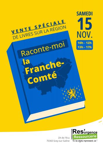 | Le 15/11/2025 à Scey sur Saône et Saint-Albin Raconte-moi la Franche-Comté - Vente spéciale de livres sur la région Le samedi 15 novembre, la ressourcerie Res’urgence propose une nouvelle vente thématique intitulée “Raconte-moi la Franche-Comté”, dédiée aux livres qui célèbrent notre territoire.Les visiteurs pourront découvrir une sélection d’ouvrages consacrés à la région : auteurs comtois, patrimoine, paysages, traditions, randonnées, cuisine locale, légendes et histoires d’antan. Cette mise en avant s’inscrit dans la démarche de l’association, qui valorise le réemploi du livre tout en invitant le public à (re)découvrir la richesse culturelle de la Franche-Comté. Infos pratiques : 📍 Ressourcerie Res’urgence – ZA de l’Écu à Scey-sur-Saône 🕒 Samedi 15 novembre de 10h à 12h et de 13h à 17h Une belle occasion de flâner parmi les rayons, de trouver de quoi lire local, et de soutenir le réemploi solidaire. Site internet : http://www.res-urgence.org |