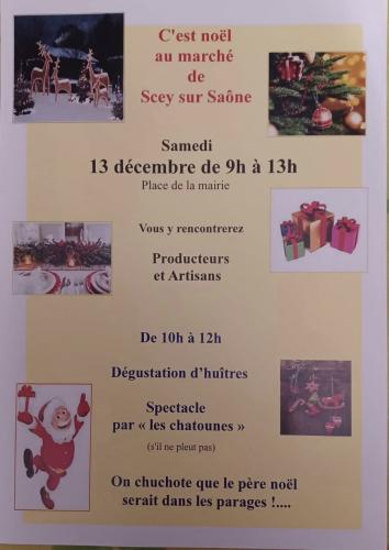 | Le 13/12/2025 à Scey sur Saône et Saint-Albin Marché de Noël Marché de Noël Producteurs et artisans vous retrouvent pour un marché de Noël de 9h à 13h place de la mairie 10h à 12h dégustation d'huitres Spectacle des chatounes si la pluie ne s'invite pas |