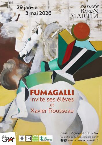 | Du 31/01/2026 au 03/05/2026 à Gray Exposition Fumagalli invite ses élèves et Xavier Rousseau Natif de Gray, Christian Fumagalli s’installe pour trois mois au musée Baron Martin qui présente une trentaine de ses ½uvres récentes permettant d’avancer dans la compréhension de son chemin pictural, de découvrir ses intérêts nouveaux, la manière dont il puise son inspiration et invente les mondes qui le caractérisent. Dans une perspective dynamique, cette exposition n’est pas séparée de ses échanges constants professionnels et amicaux et de son activité d’enseignant à Besançon. Aux côtés de son invité d’honneur – le peintre Xavier Rousseau dévoilé à travers une dizaine d’½uvres qui signent les étapes de sa présence – prennent place une douzaine de ses élèves qui révèlent chacun à travers une ½uvre un état de leurs recherches personnelles : Alexandre Buisson, Damien Clavez, Gérard Dordain, Hélène Dupré, Rémi Dziedzic, Corinne Gueguen, Danielle Hsiung, Anne Marquis, Herna Meltzer, Alain Michaud, Philippe Richard et Vinciane Rouvroy. Une occasion rêvée de découvrir les intérêts, les pratiques, les territoires personnels, les projets et les parcours de vie qui convoquent la peinture contemporaine de notre région en s’accommodant à notre époque. Site internet : http://www.musee-baronmartin.fr/ |