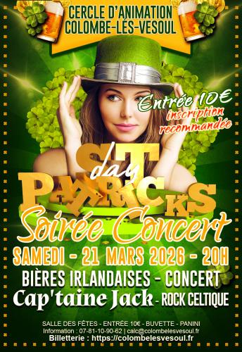 | Le 21/03/2026 à Colombe lès Vesoul Saint-Patrick ☘️ J-15 avant la Saint-Patrick ! ☘️Le compte à rebours est lancé ! Dans 15 jours, on sort les trèfles, on enfile du vert de la tête aux pieds (même un bout de scotch sur un trèfle découpé, ça compte 😄) et on se retrouve pour une soirée mémorable ! 📅 Samedi 21 mars 📍 Salle des fêtes de Colombe-lès-Vesoul 🚪 Ouverture des portes à 20h 🍺 Au menu : de la musique avec Cap'taine Jack, de l'ambiance, des rires et des pintes levées bien haut à la santé de Saint-Patoche ! ⚠️ Attention, les places filent plus vite qu'une Guinness un soir de match — ne traînez pas ! 🎟️ Réservez maintenant → https://plusbilletterie.helloasso.com/fr/evenements/6945210f44919ebf22bf6e86 On compte sur vous pour chanter, trinquer et faire trembler le plancher comme de vrais lutins irlandais ! 🎶🍀 📅 Tous les détails de l'événement : https://www.facebook.com/events/867156662955366 Site internet : https://plusbilletterie.helloasso.c... |