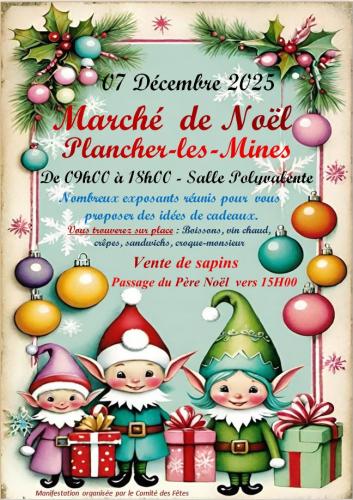 Le 07/12/2025 à Plancher les Mines MARCHE DE NOEL ![]() Information exposants : Emplacement : 4¤ le mètre linéaire (3m maximum) - 5¤ à l'extérieur (quelle que soit la longueur) Date limite d'inscription (réception bulletin d'inscription + règlement) : 01/12/2025 Vous trouverez sur place : boissons, vin chaud, crêpes, sandwichs, croque-monsieur, soupe. Ouverture des portes à partir de 07h30 pour installation des stands Information visiteurs : Entrée gratuite. Vente de sapins. Passage du père Noël vers 15h00 Nombreux exposants réunis pour vous proposer des idées cadeaux |